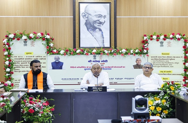 पटना: प्रधानमंत्री नरेन्द्र मोदी ने नई दिल्ली स्थित विज्ञान भवन से वीडियो कॉन्फ्रेंसिंग के माध्यम से बिहार के युवाओं के लिए शिक्षा और कौशल विकास से जुड़ी महत्वाकांक्षी योजनाओं का शुभारंभ किया। इस कार्यक्रम में पटना स्थित अणे मार्ग के ‘संकल्प’ केंद्र से मुख्यमंत्री नीतीश कुमार, उपमुख्यमंत्री सम्राट चौधरी, उप मुख्यमंत्री विजय कुमार सिन्हा और अन्य वरिष्ठ मंत्रिगण भी शामिल रहे।