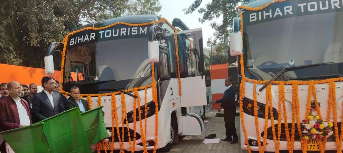 Bihar News : बिहार के पर्यटन मंत्री अरुण शंकर प्रसाद ने शुक्रवार को राजधानी पटना के दरोगा राय पथ स्थित सिख हेरिटेज भवन परिसर से दो अत्याधुनिक कैरावैन बसों को हरी झंडी दिखाकर रवाना किया। पर्यटन विभाग की यह पहल राज्य में लग्ज़री और अनुभव आधारित पर्यटन को बढ़ावा देने की दिशा में मील का पत्थर मानी जा रही है। इस अवसर पर पर्यटन मंत्री अरुण शंकर प्रसाद ने कहा कि बिहार सरकार पर्यटन को प्रोत्साहित करने के लिये कई महत्वाकांक्षी परियोजनाओं पर कार्य कर रही है।