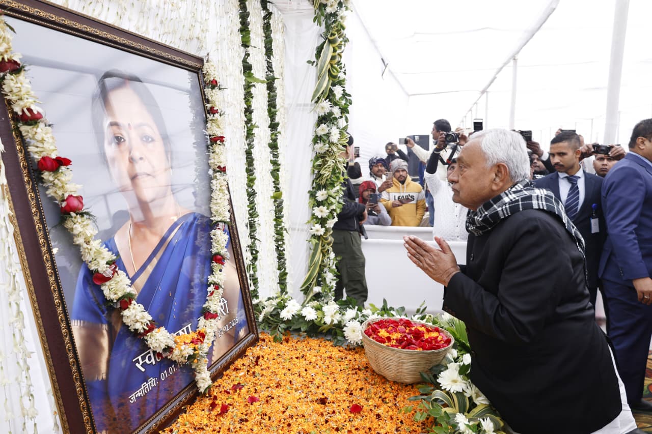 Bihar News: बिहार के मुख्यमंत्री नीतीश कुमार शनिवार को जनता दल यूनाईटेड (जदयू) विधायक भगवान सिंह कुशवाहा की धर्मपत्नी स्व. उषा कुमारी की पुण्य स्मृति में आयोजित शोक सभा में शामिल हुये।