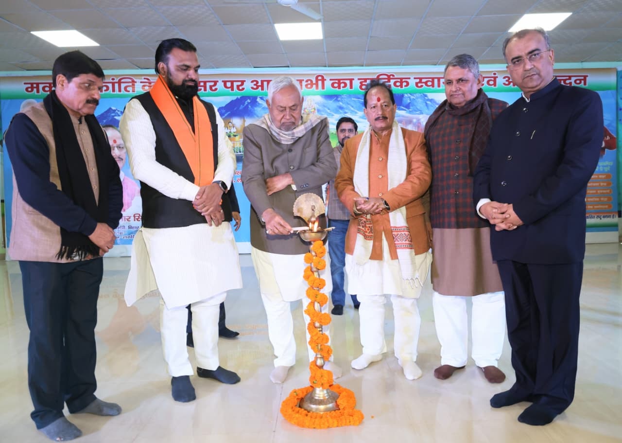 Makar Sankranti 2026: बिहार के मुख्यमंत्री नीतीश कुमार (Nitish Kumar) मंगलवार को मकर संक्रांति के उपलक्ष्य में उपमुख्यमंत्री विजय कुमार सिन्हा (Vijay Kumar Sinha) की ओर से आयोजित कार्यक्रम में शामिल हुए।