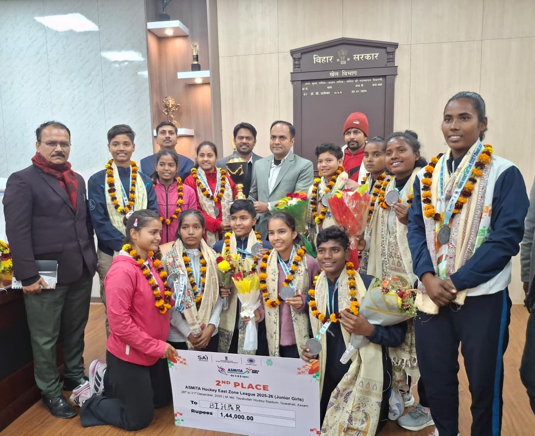 Bihar News: गुवाहाटी में आयोजित जूनियर ईस्ट ज़ोन खेलो इंडिया ASMITA गेम्स में रजत पदक जीतकर बिहार की जूनियर हॉकी गर्ल्स टीम ने न सिर्फ एक उपलब्धि अपने नाम की, बल्कि राज्य के खेल इतिहास में एक नया अध्याय भी जोड़ा। विकास भवन में आयोजित मुलाकात के दौरान जब बिहार के खेल विभाग के सचिव महेंद्र कुमार और निदेशक-खेल आरिफ अहसन ने इन खिलाड़ियों से संवाद किया, तो माहौल गर्व, आत्मविश्वास और भविष्य की उम्मीदों से भरा नजर आया।