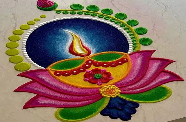 दीयों वाली रंगोली – Light up your home with DIYA patterns