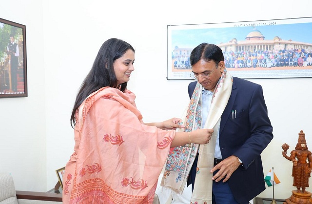 रक्षा खडसे ने विशेषकर स्कूल के बच्चों के बीच खेल संस्कृति के विकास और उनके बीच प्रतिभा चयन को लेकर चर्चा की साथ ही साथ खेल के अनुरूप उनकी सेहत ,स्वास्थ्य और वैज्ञानिक तरीके से उनके प्रशिक्षण संबंधी विषयों पर भी विस्तार से अपनी राय रखी। श्रेयसी सिंह ने डॉ.मंडाविया और रक्षा खडसे को मधुबनी पेंटिंग्स से सुसज्जित साड़ी,अंग वस्त्र और बोधि वृक्ष का प्रतीक चिन्ह उन्हें देकर उनका अभिनंदन किया।