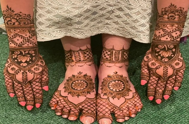 मंडाला डिज़ाइन अब हाथों के साथ-साथ पैरों पर भी काफी ट्रेंड में है। इसमें जाल पैटर्न और उंगलियों के डिज़ाइन से पैरों की खूबसूरती को और भी आकर्षक बनाया जाता है।