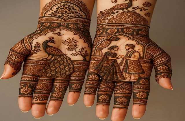 बिहार की महिलाएं भी इस बार फुल हैंड मेहंदी डिज़ाइन ट्राई करने की तैयारी में हैं। हथेली पर तबला, नाम या पारंपरिक शुभ संदेश “सदा सौभाग्यवती भव” लिखवाना बेहद ट्रेंड में है।