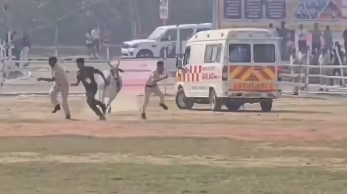 अधिकारियों के अनुसार, हेलीपैड क्षेत्र को पहले से ही बांस के बैरिकेड लगाकर पूरी तरह से सुरक्षित कर दिया गया था, और वहां केवल अधिकृत कर्मियों को ही प्रवेश की अनुमति थी। इन सावधानियों के बावजूद, एक आवारा सांड अचानक प्रतिबंधित क्षेत्र में घुस आया, जिससे वहां अफरा-तफरी और दहशत फैल गई। जब पुलिसकर्मियों ने जानवर को भगाने की कोशिश की, तो सांड ने उनका पीछा करना शुरू कर दिया, जिससे अधिकारियों को अपनी जान बचाने के लिए भागना पड़ा। हमले से बचने के लिए कई पुलिसकर्मी उस जगह से भाग खड़े हुए, जबकि जानवर कुछ देर तक हेलीपैड के आसपास घूमता रहा।