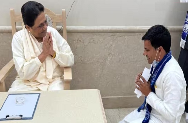 बसपा विधायक पिंटू यादव की ‘घुटने टेक’ तस्वीर वायरल, मायावती के चरण स्पर्श पर दी सफाई