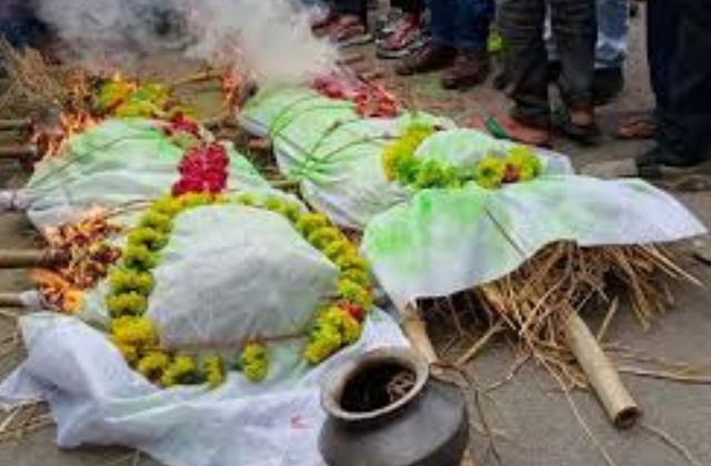 मंगलवार दोपहर गांव में एक साथ दो अर्थियां सजीं। एक 25 साल के जवान बेटे की, दूसरी 65 साल के बुजुर्ग चाचा की। दोनों शवों को कंधा देने पूरा गांव उमड़ पड़ा। चाचा की पत्नी, चार बेटे और बेटी बेसुध होकर शव से लिपटे रहे। एक ही घर से 12 घंटे के अंदर दो जनाजे निकलने का दृश्य देखकर हर आंख नम हो गई।