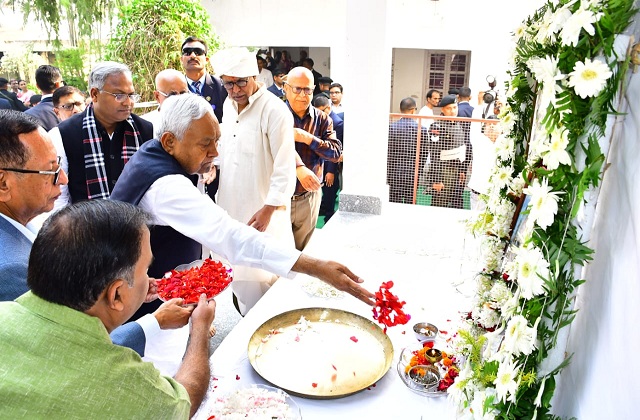 पटना : मुख्यमंत्री नीतीश कुमार ने आज बिहार राज्य आपदा प्रबंधन प्राधिकरण के उपाध्यक्ष उदय कांत मिश्रा के भागलपुर में भीखनपुर गुमटी नंबर - 3 स्थित आवास पर जाकर उनकी स्व० माता जी के श्राद्धकर्म में भाग लिया।