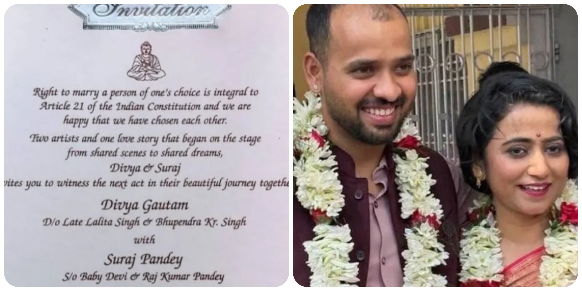 इस विवाह का सबसे आकर्षक हिस्सा इनका 'वेडिंग कार्ड' रहा, जो सोशल मीडिया पर चर्चा का विषय बना हुआ है। कार्ड की शुरुआत किसी धार्मिक मंत्र के बजाय भारतीय संविधान के अनुच्छेद 21 (Article 21) के उल्लेख से होती है। कार्ड पर स्पष्ट संदेश लिखा है— "अपनी पसंद के जीवनसाथी को चुनना हर नागरिक का संवैधानिक अधिकार है और हमें गर्व है कि हमने एक-दूसरे को चुना है।"