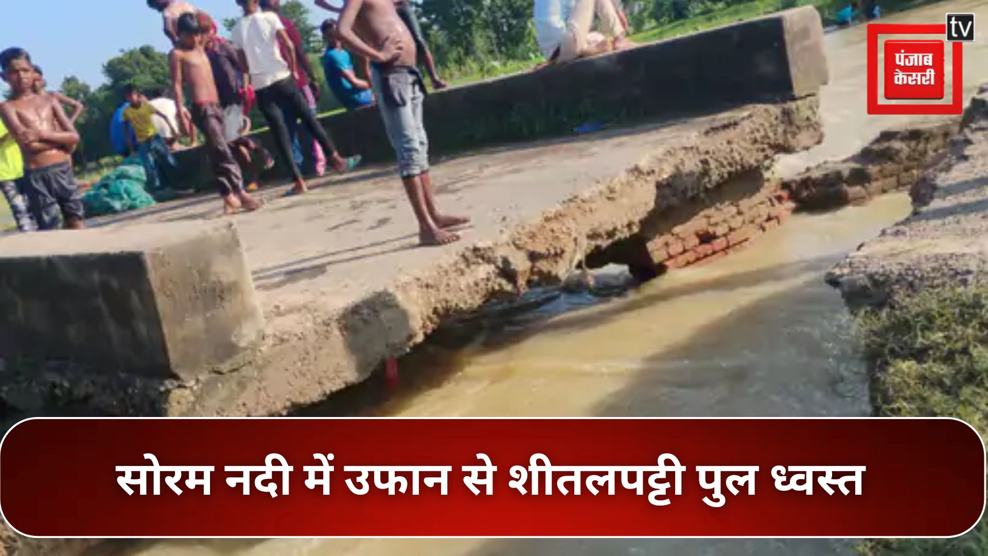 Sitamarhi News: बिहार के सीतामढ़ी जिले के बथनाहा शीतलपट्टी गांव के पास सोरम नदी पर बना पुल बुधवार सुबह पानी के तेज बहाव में पूरी तरह ध्वस्त हो गया। घटना के बाद स्थानीय लोगों में दहशत का माहौल है।