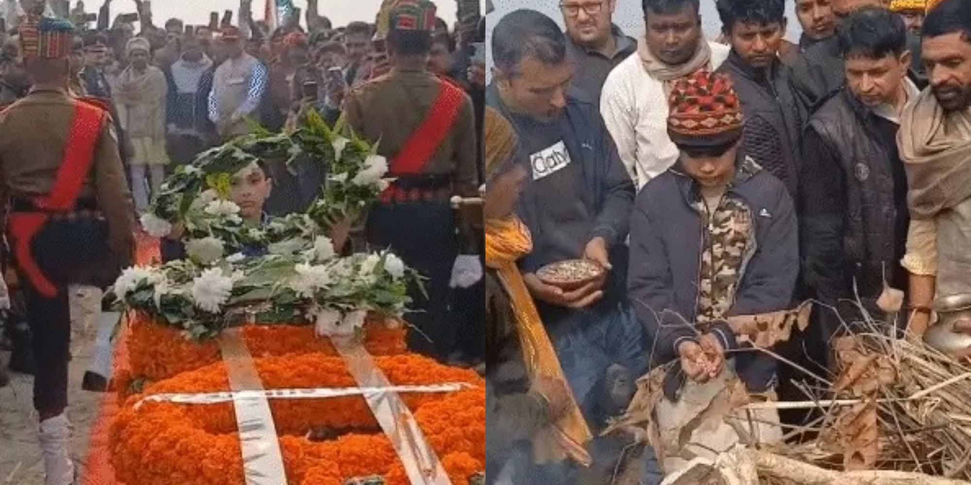 मुखाग्नि देने के बाद शहीद के बड़े बेटे प्रियांशु ने कहा कि उनके पिता हमेशा उन्हें मन लगाकर पढ़ाई करने और बड़ा अधिकारी बनने के लिए प्रेरित करते थे। उन्होंने बताया कि छुट्टी पर आए पिता से पिछली बार बातचीत हुई थी।