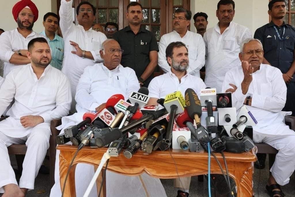 नई दिल्ली/पटनाः बिहार के मुख्यमंत्री नीतीश कुमार और उपमुख्यमंत्री तेजस्वी यादव तथा अन्य नेताओं ने बुधवार को यहां कांग्रेस नेता राहुल गांधी और पार्टी अध्यक्ष मल्लिकार्जुन खड़गे से मुलाकात करके सभी विपक्षी दलों को एकजुट कर चुनाव लड़ने का ऐतिहासिक फैसला लिया।