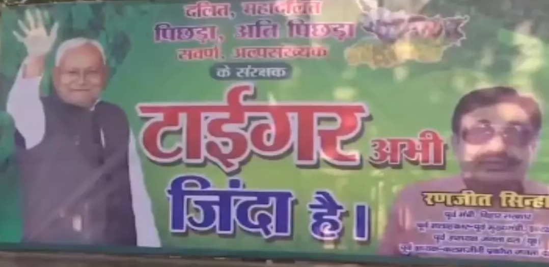 पोस्टर में लिखा है “टाईगर अभी जिंदा है।” साथ ही पोस्टर में नीतीश कुमार को दलित, महादलित, पिछड़ा, अति पिछड़ा, सवर्ण, अल्पसंख्यक का संरक्षक बताया गया है। वहीं इस संबंध में जेडीयू के राष्ट्रीय प्रवक्ता राजीव रंजन ने कहा कि बिल्कुल टाइगर अभी जिंदा है। नीतीश कुमार ने अपनी कार्यशैली से करारा जवाब दिया है। राजीव रंजन ने बड़ा दावा करते हुए कहा कि नीतीश कुमार के नेतृत्व में एक बार फिर से NDA की सरकार बनेगी।