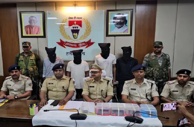 हजारीबाग में राहुल दुबे गैंग के 4 अपराधी गिरफ्तार, पेट्रोल छिड़ककर हाईवा में लगाई थी आग; हथियार व पर्चे बरामद