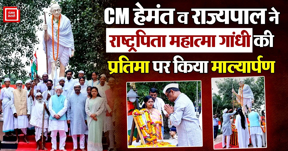 CM हेमंत व राज्यपाल ने राष्ट्रपिता महात्मा गांधी की प्रतिमा पर किया माल्यार्पण, कहा- उनका जीवन हम सभी के लिए प्रेरणा का स्रोत है