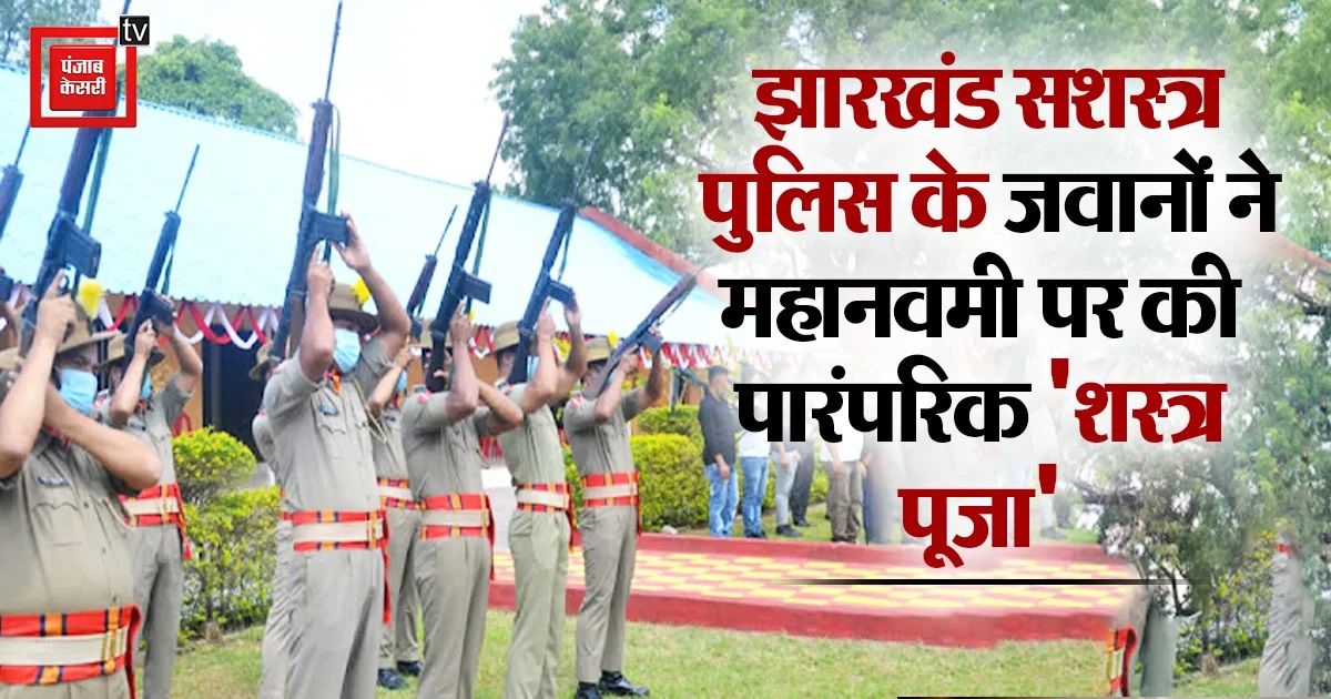 रांची: झारखंड सशस्त्र पुलिस (जेएपी) की पहली बटालियन के जवानों ने सदियों पुरानी परंपरा के तहत बीते बुधवार को महानवमी के अवसर पर शस्त्र पूजा की और देवी दुर्गा को बंदूक की सलामी दी।