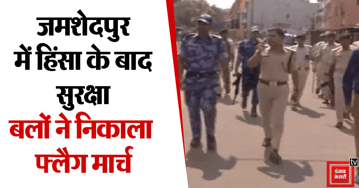 जमशेदपुर में भड़की हिंसा के बाद धारा 144 लागू, सुरक्षा बलों ने निकाला फ्लैग मार्च