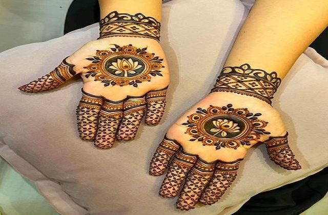 कमल के फूल वाली मेहंदी डिजाइन काफी ट्रेंड कर रही है। इसमें हथेली पर छोटे-बड़े कमल के फूल बनाए जाते हैं और उंगलियों पर भी इसी पैटर्न से डिजाइन पूरा किया जाता है। यह डिजाइन न केवल देखने में आकर्षक है बल्कि इसे लगाने में 10 मिनट से भी कम समय लगता है।