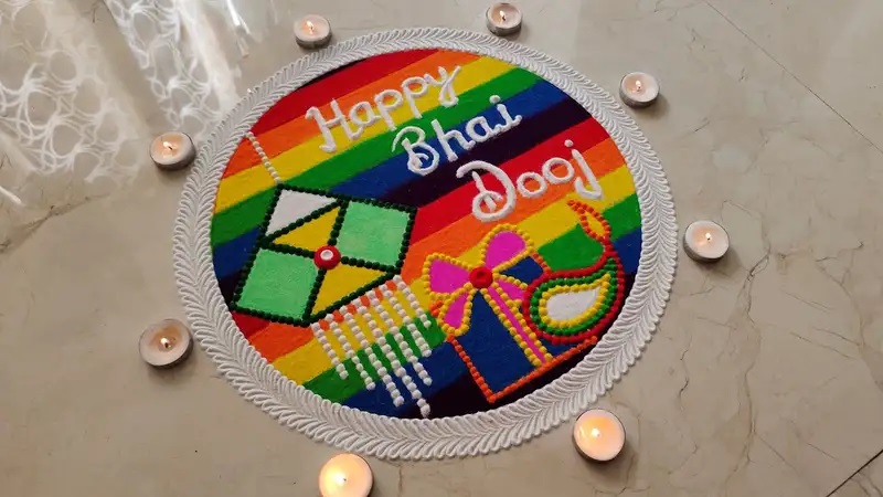 Bhai Dooj Rangoli Design 2025: कार्तिक माह के शुक्ल पक्ष की द्वितीया तिथि को भाई दूज (Bhai Dooj) का पर्व मनाया जाता है। रक्षा बंधन की तरह यह त्योहार भी भाई-बहन के प्रति एक-दूसरे के स्नेह को अभिव्यक्त करता है। इस दिन घर की सजावट में रंगोली का बहुत महत्व है। अगर आप भी भाई दूज पर घर में बड़ी और खूबसूरत रंगोली बनाना चाहती हैं। तो हम आपके लिए कुछ रंगोली डिजाइन लेकर आए है, आसान और आकर्षक रंगोली डिज़ाइन्स, जिन्हें कोई भी घर पर आसानी से बना सकता है।