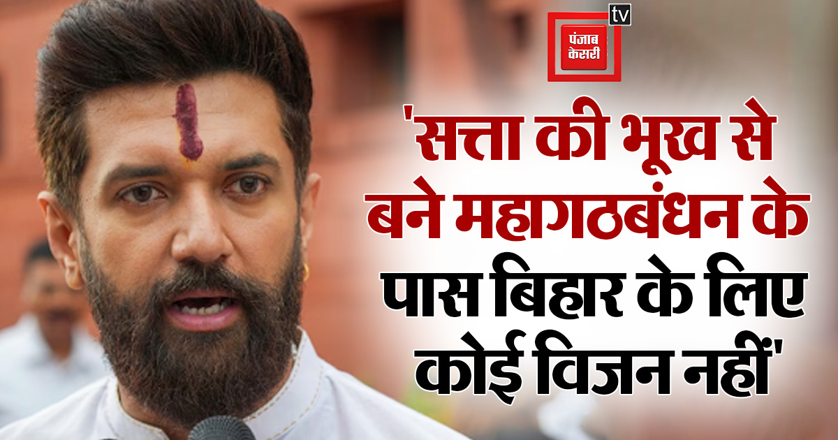 Bihar Politics: केन्द्रीय मंत्री और लोक जनशक्ति पार्टी (रामविलास) के राष्ट्रीय अध्यक्ष चिराग पासवान (Chirag Paswan) ने महागठबंधन पर हमला करते हुए शनिवार को कहा कि सत्ता की भूख से बने महागठबंधन के पास बिहार के लिये कोई विजन नहीं है।