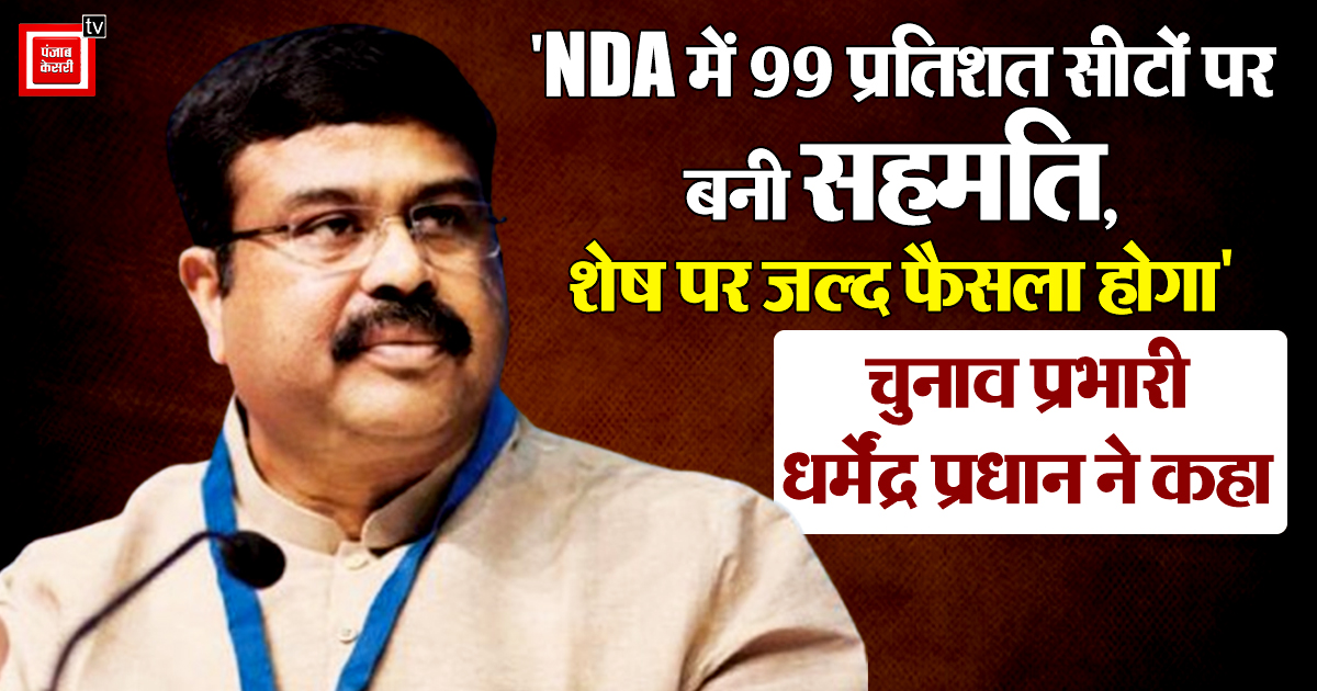 "NDA में 99 प्रतिशत सीटों पर बनी सहमति, शेष पर जल्द फैसला होगा", चुनाव प्रभारी धर्मेंद्र प्रधान ने कहा