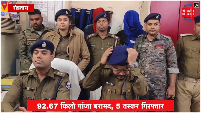 रोहतास पुलिस की बड़ी कार्रवाई, 92.67 किलो गांजा बरामद, 5 तस्कर गिरफ्तार